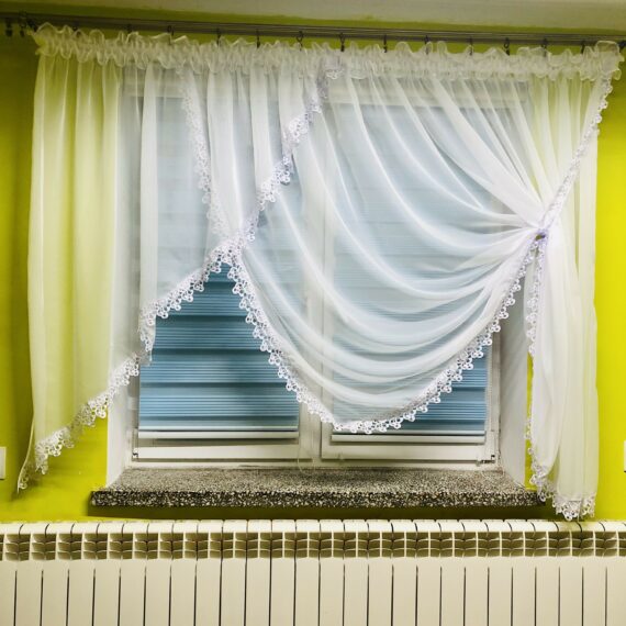Długie firana gotowa woał z gipiurą szerokość 200cm