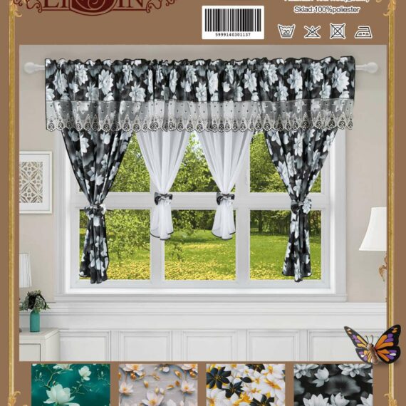 Długa firana gotowa z gipiurą 20cm szerokość 300cm