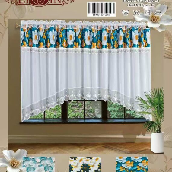 Długa firana gotowa z gipiurą 20cm szerokość 400cm