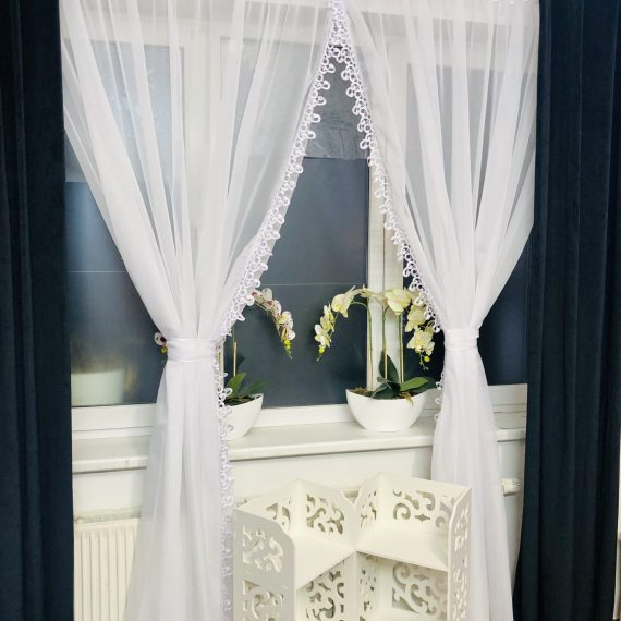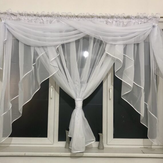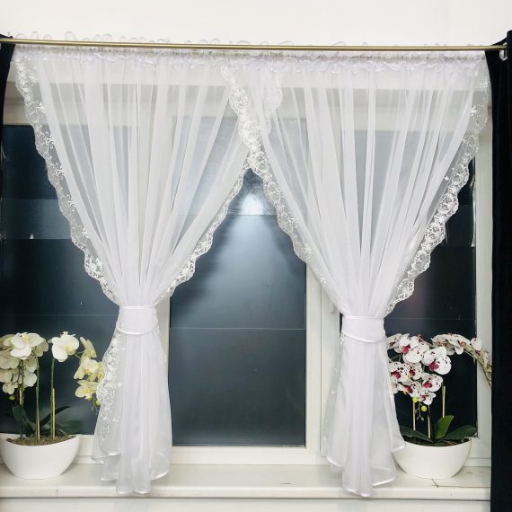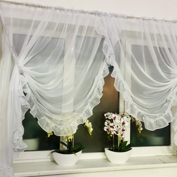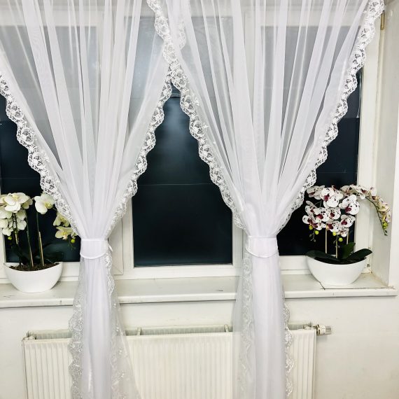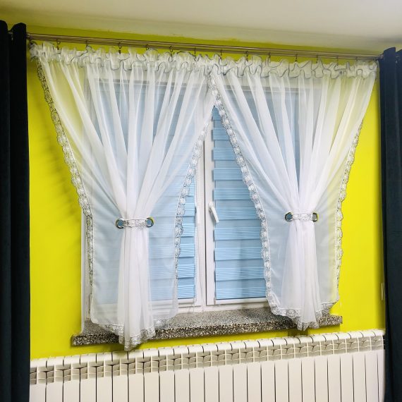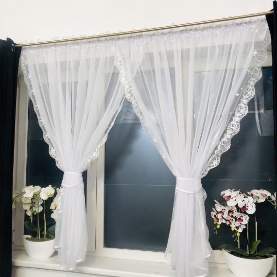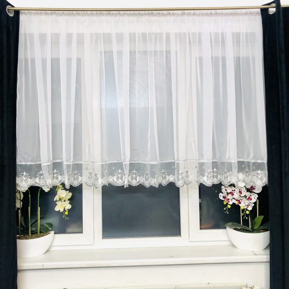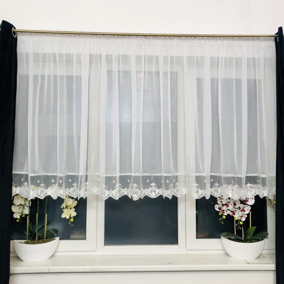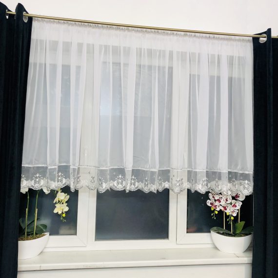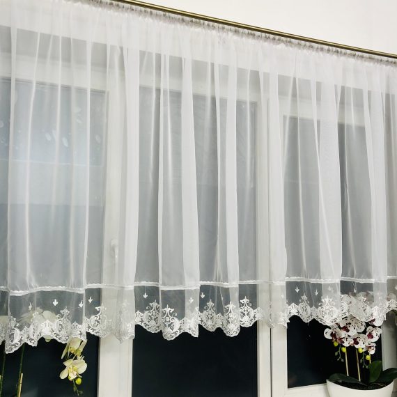 Krótkie firany gotowe woal z haftem gipiura bialy