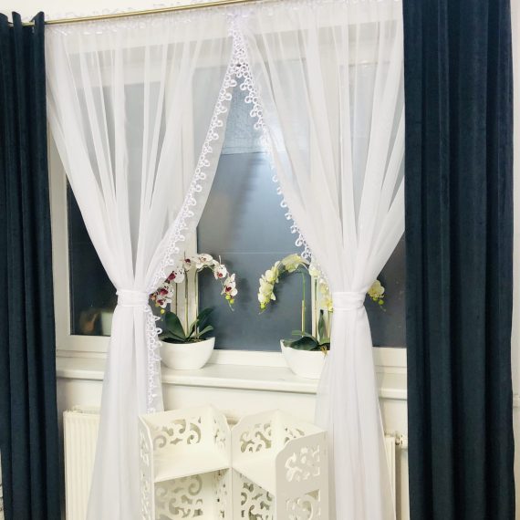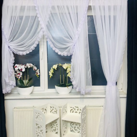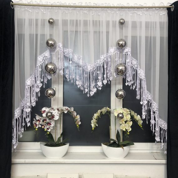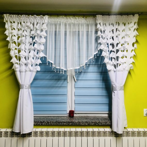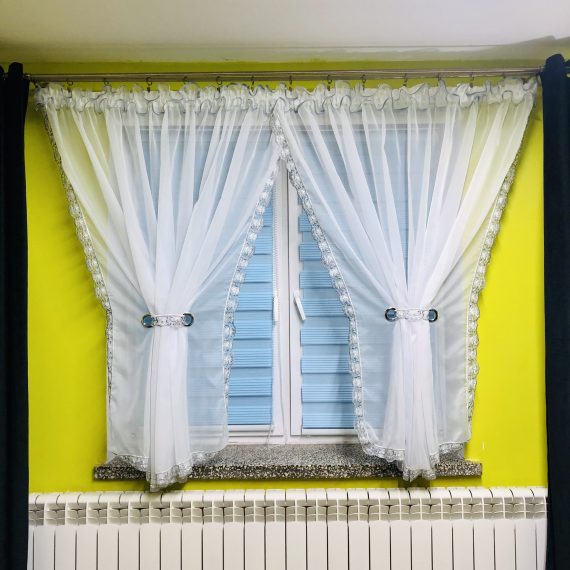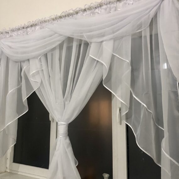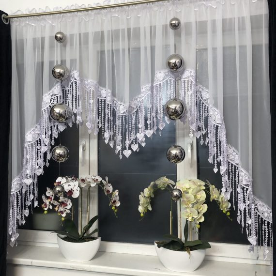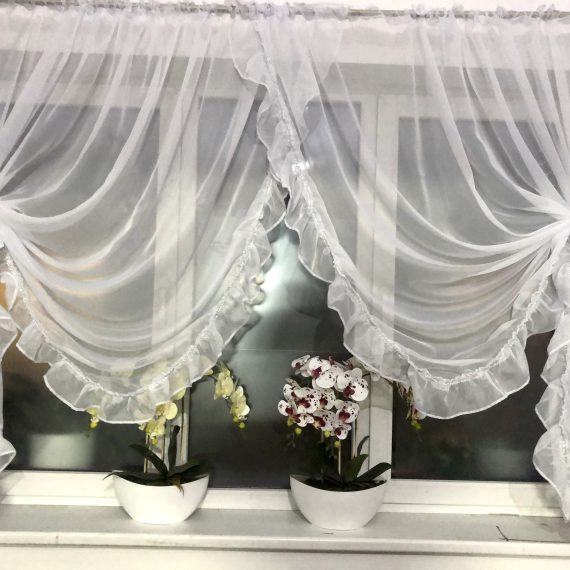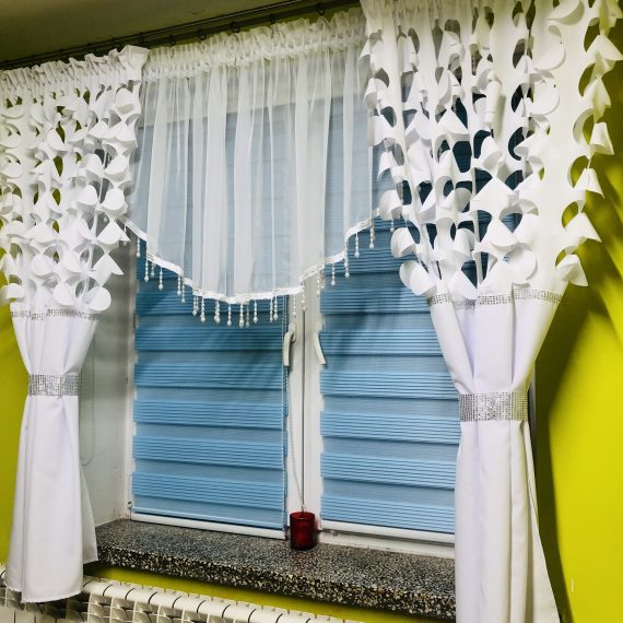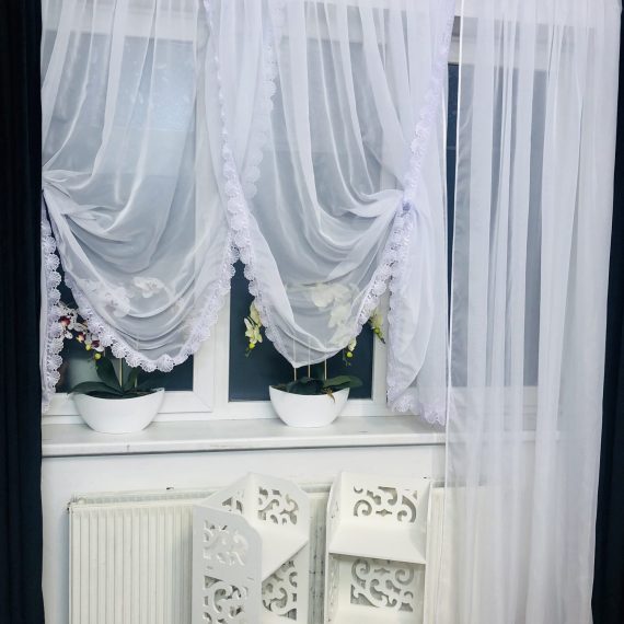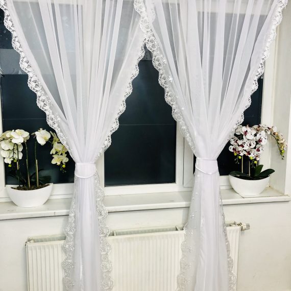 Krótkie firany gotowe woal z haftem gipiura bialy