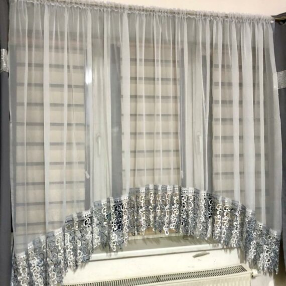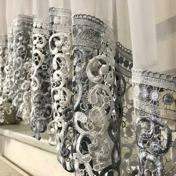 Firany gotowy woal z delikatnym haftem gipiura szary