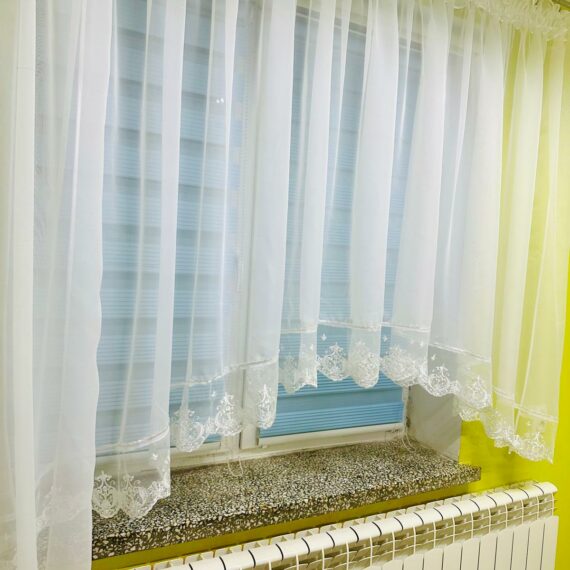 Długie firana gotowa woał z gipiurą szerokość 200cm