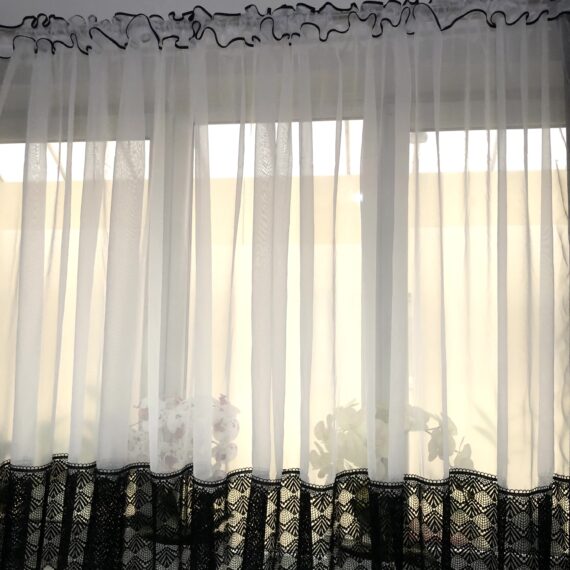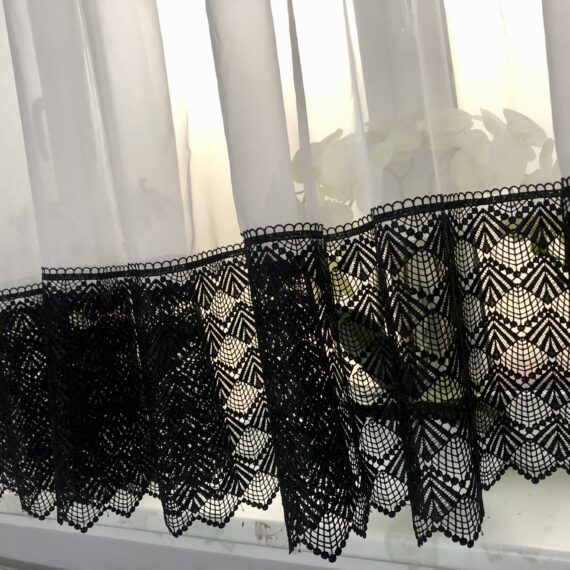 Długa firana gotowa z gipiurą 20cm szerokość 600cm