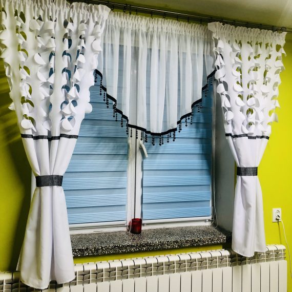 Piękne firany z falbanka i nowoczesną gipiurą