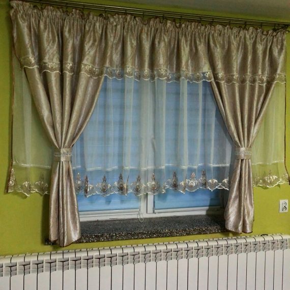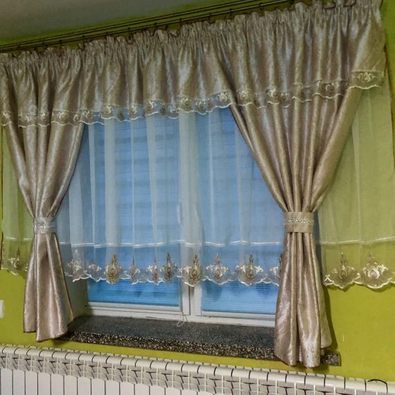 Komplet firana dekoracja z modnym haftem gipiurą – beżowy
