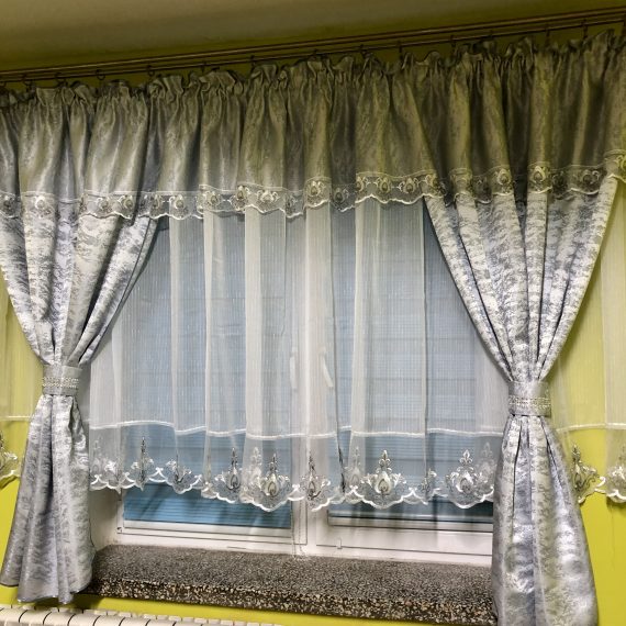 Komplet firana dekoracja z modnym haftem gipiurą – ziełony