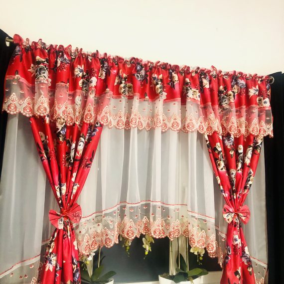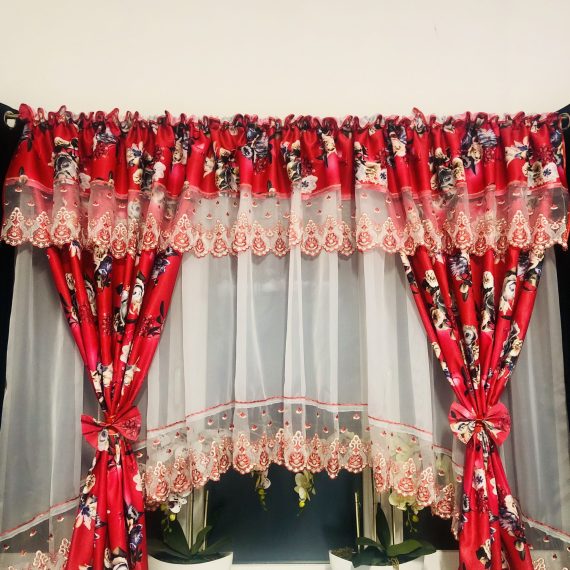 Falbanka firana gotowa z renifer gipiurą 400x160cm AL09 czerwony