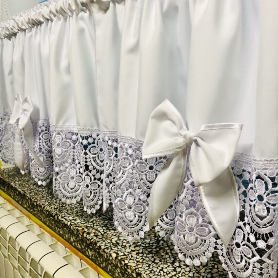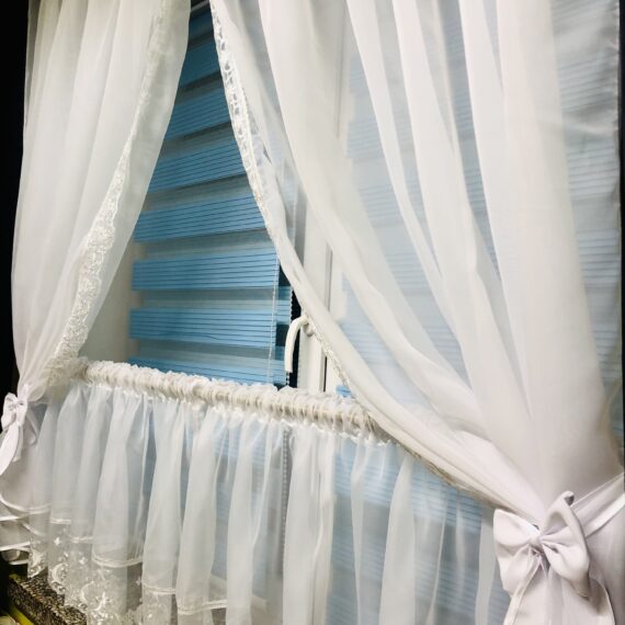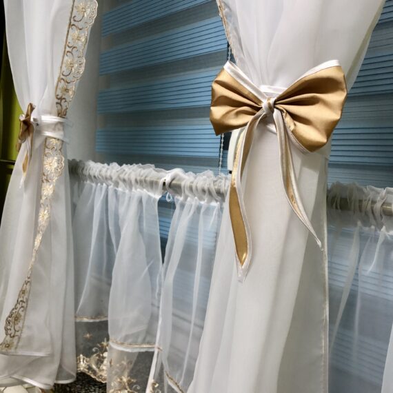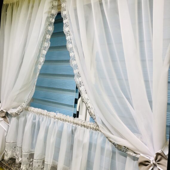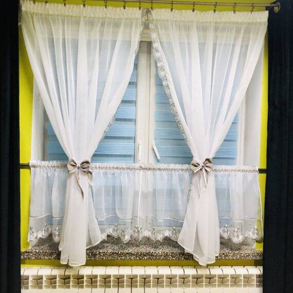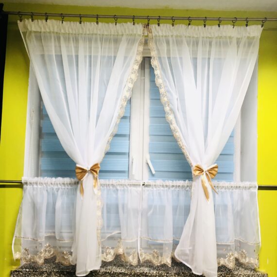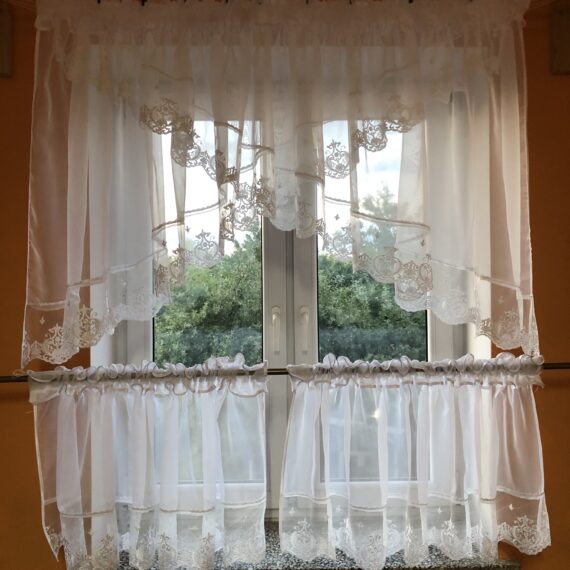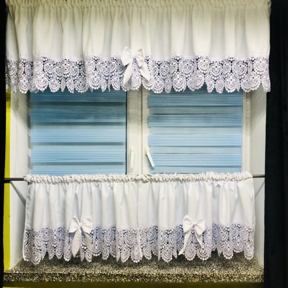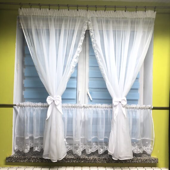 Komplet firana dekoracja z modnym haftem gipiurą – kremowy