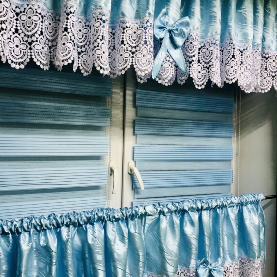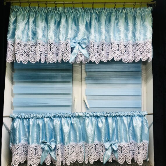 Komplet firana dekoracja z modnym haftem gipiurą – ziełony