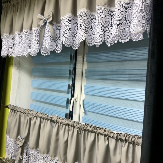 Komplet firana dekoracja z modnym haftem gipiurą – beżowy