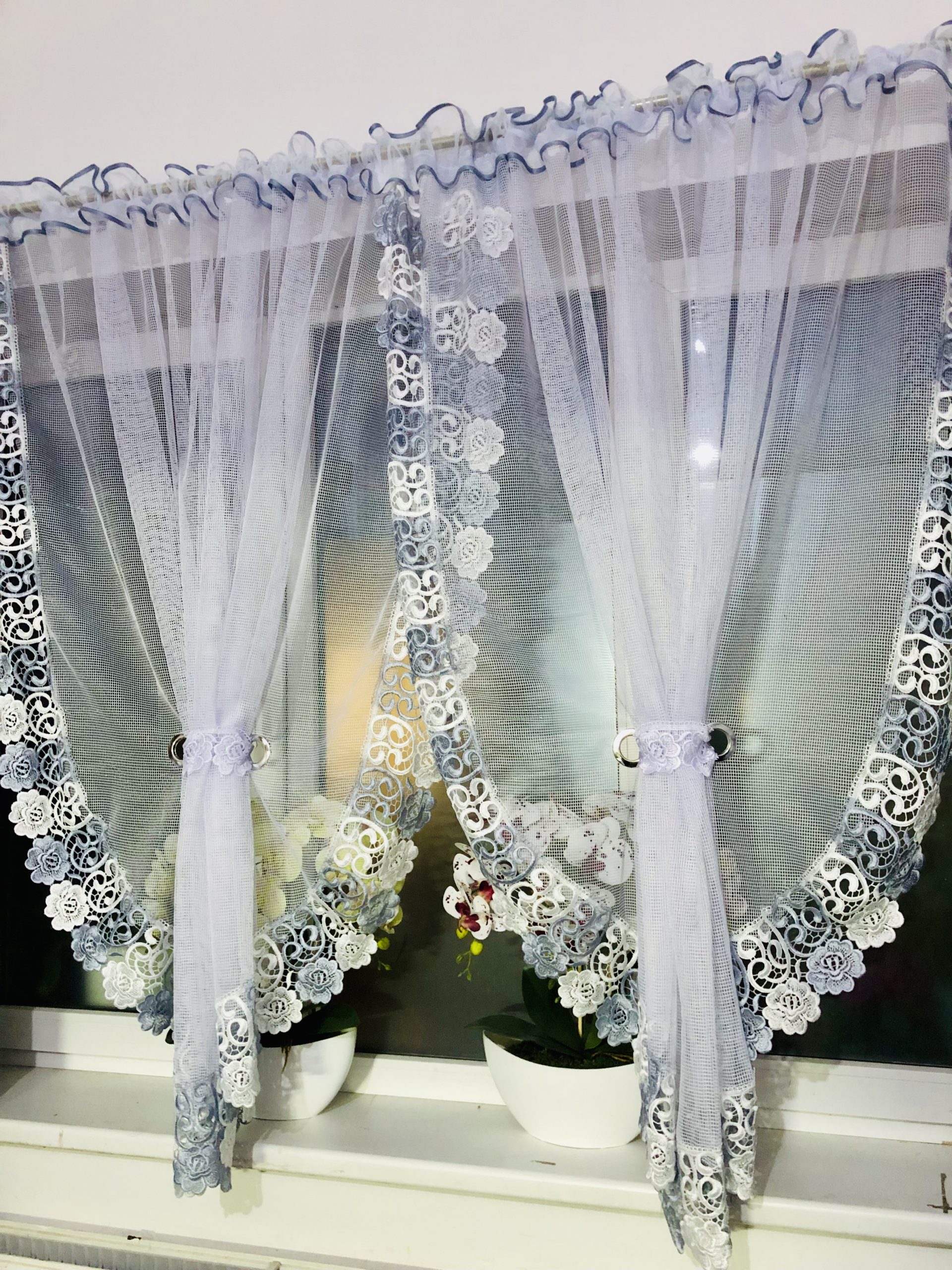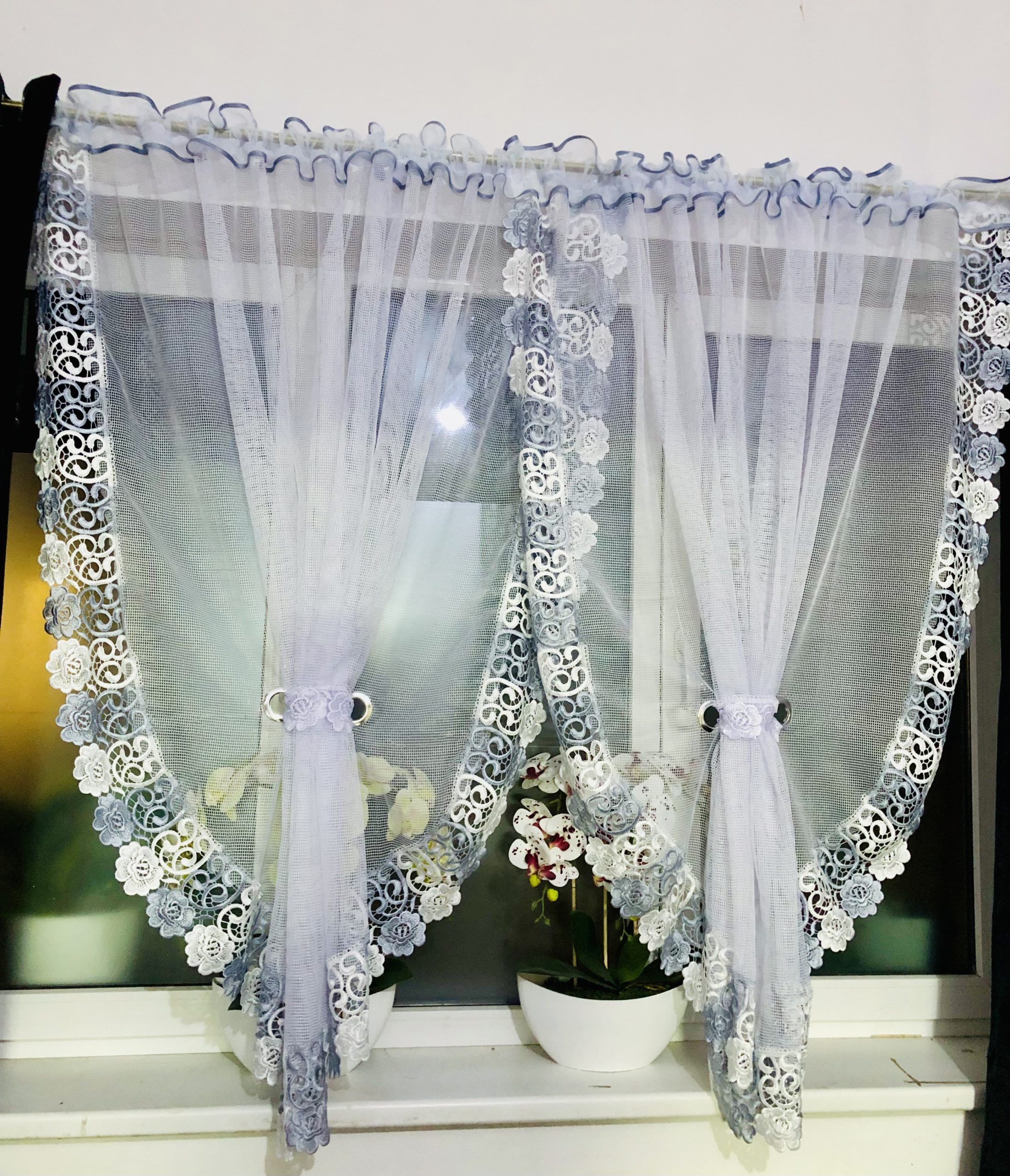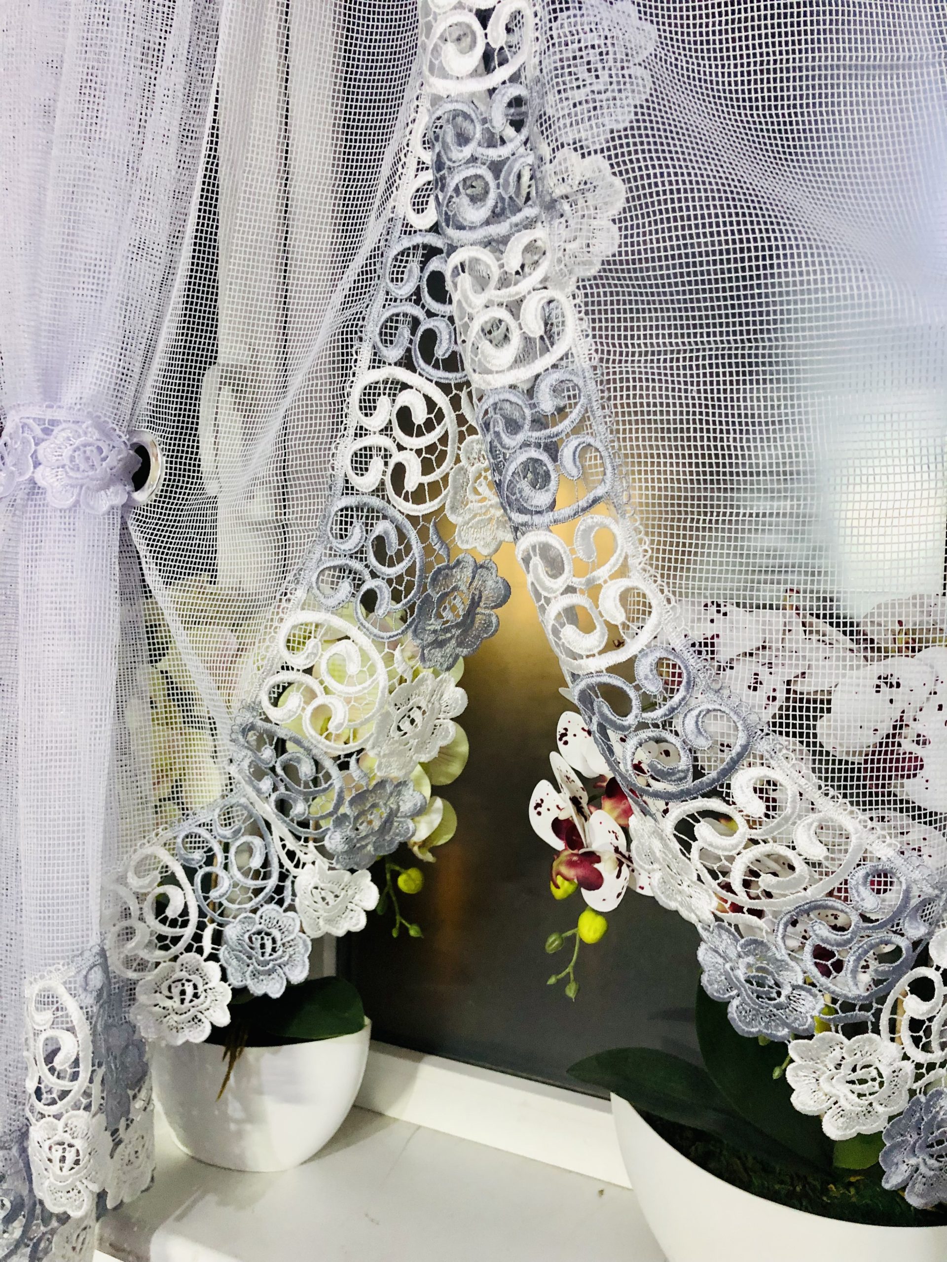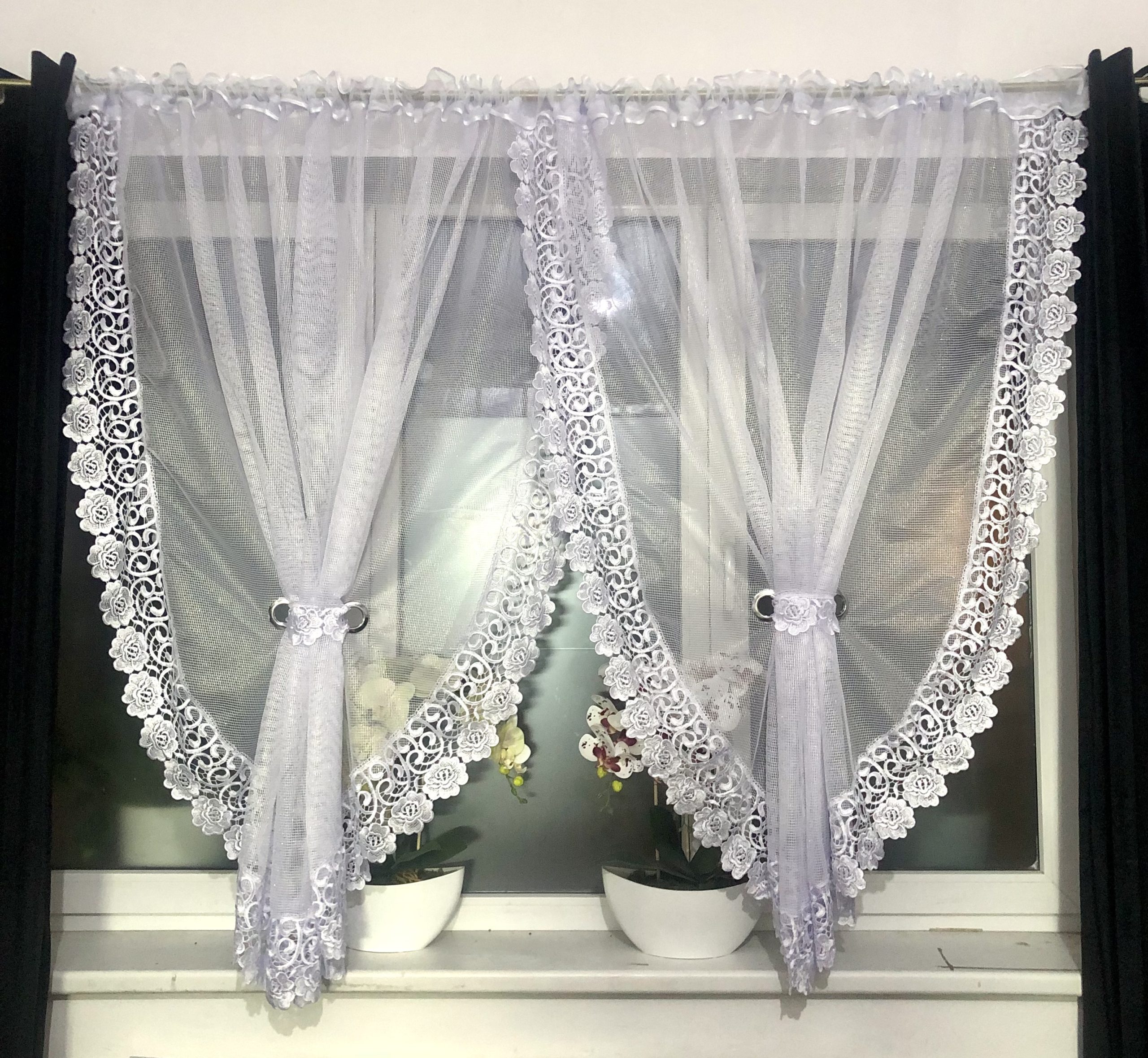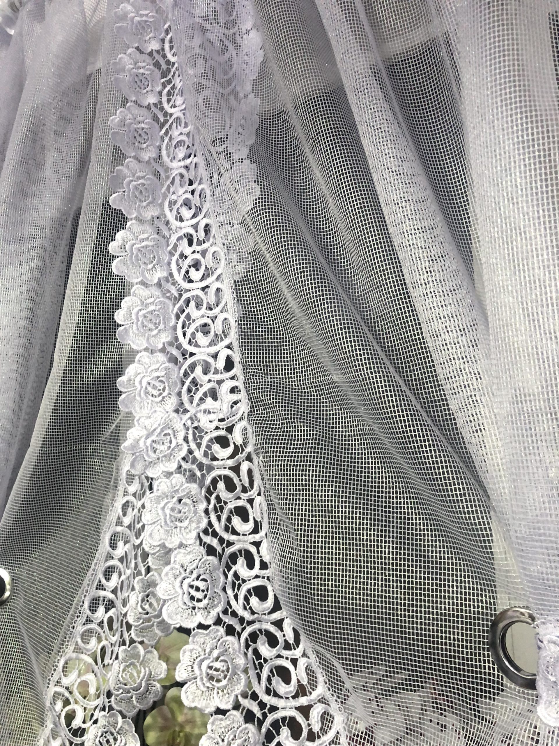 Firana gotowa w biały markizeta wzorze w połączeniu z piękną ozdobną gipiurą, która doskonale ożywi Twoje wnętrze!!!