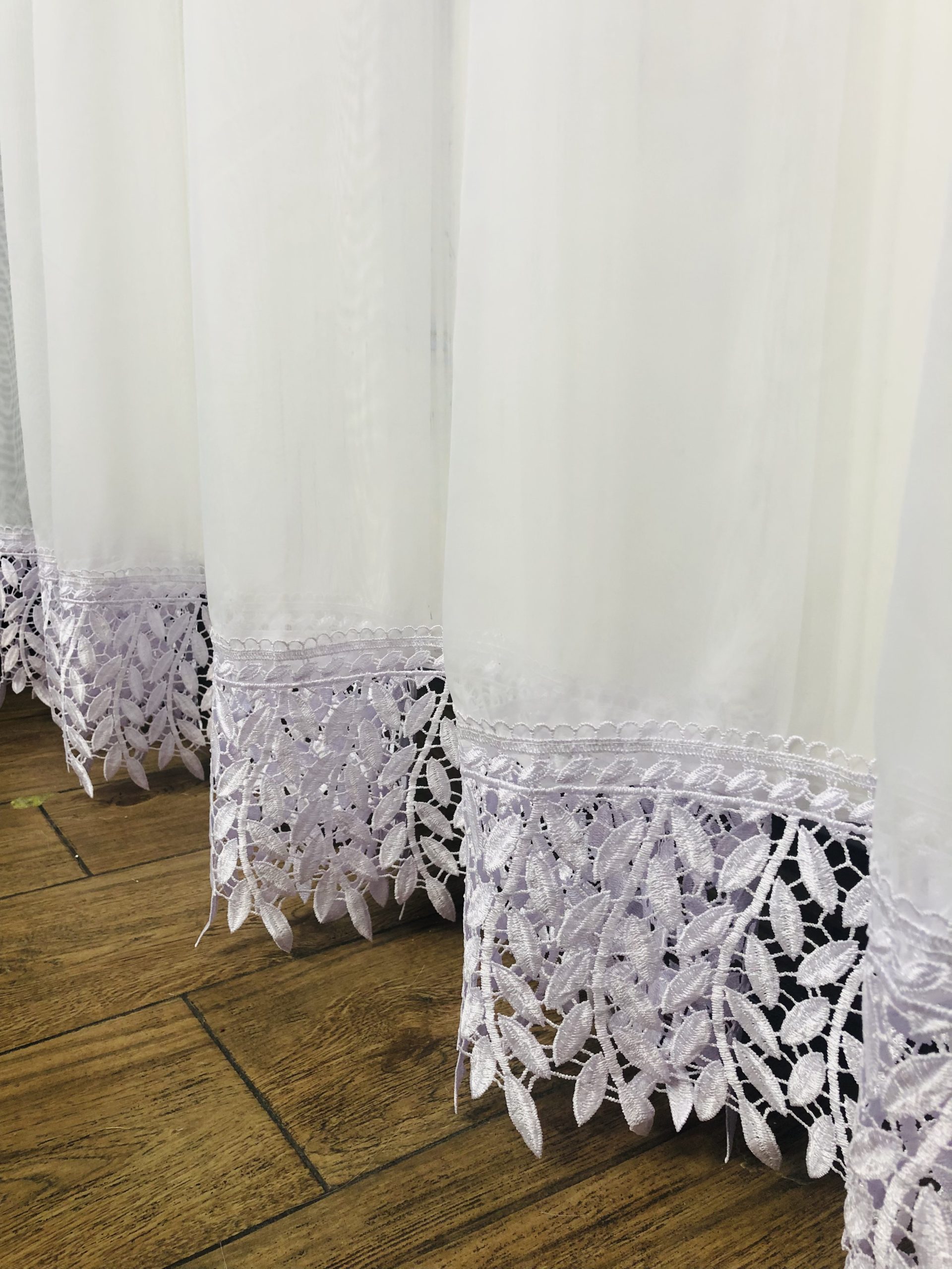 Woał jest materiałem popularnym i uniwersalnym. Firana z gipiurą uszyta z woalu i ozdobną gipiurą 20cm. Biały, delikatny woał wyróżnia się gładką i miłą w dotyku strukturą. Materiał przepuszcza światło i chroni prywatność mieszkańców. Firanka ładnie się układa i jest bardzo łatwa w prasowaniu. Dół firanki wykończony jest piękną szeroką gipiurą. Boki firany obszyte biały lamówką