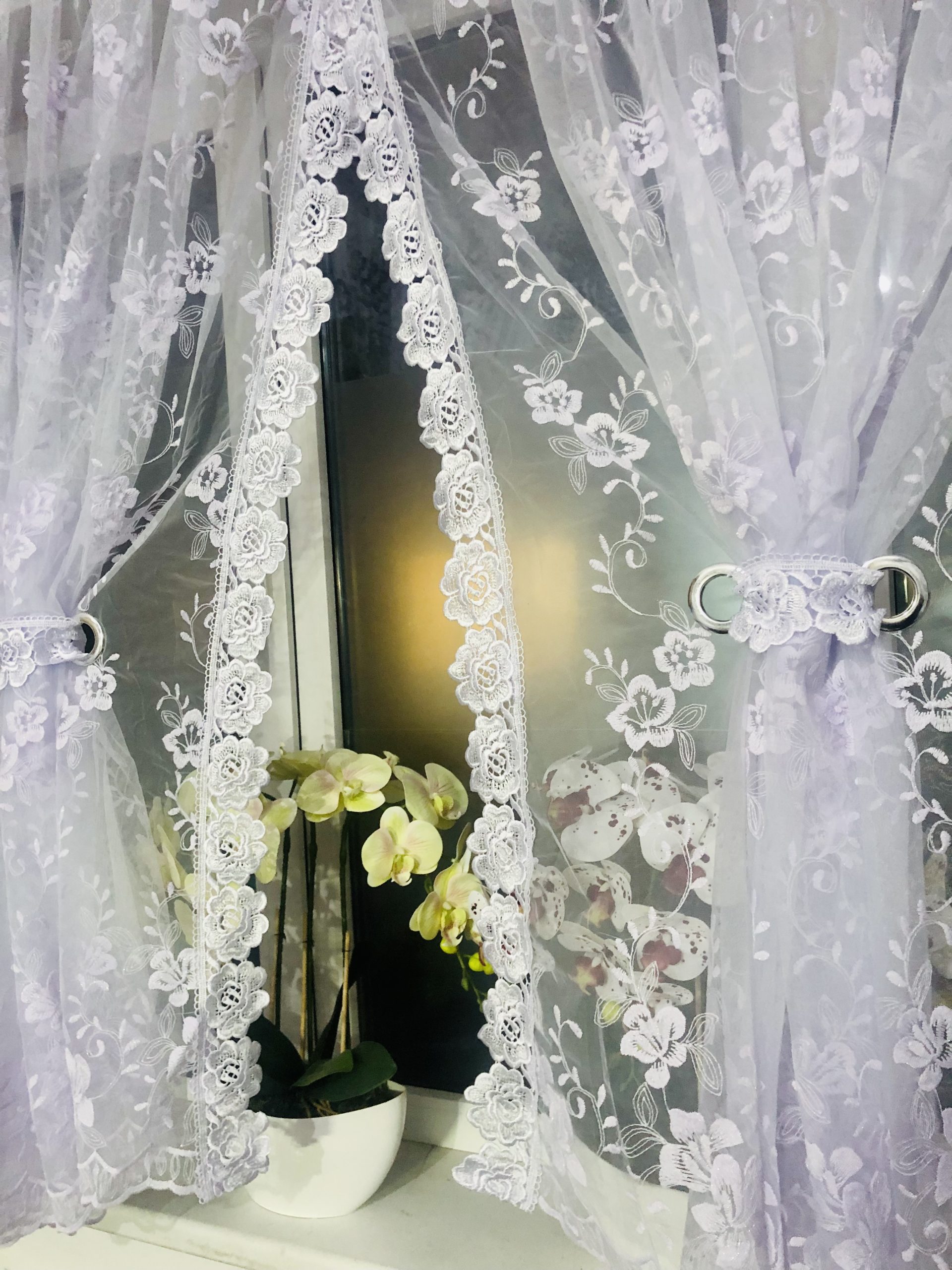 Elegancka firana gotowa do zawieszenia, wykonana z doskonałego materiału markizeta w cienkiej siatce, starannie wykończona przez wprawnego rzemieślnika z 8cm gipiurą na brzegu firany. Patrząc bezpośrednio, zasłona będzie miała lekki połysk. Firana o szerokości 600 cm i długości 150 cm to wspólny rozmiar z drzwiami duży okno