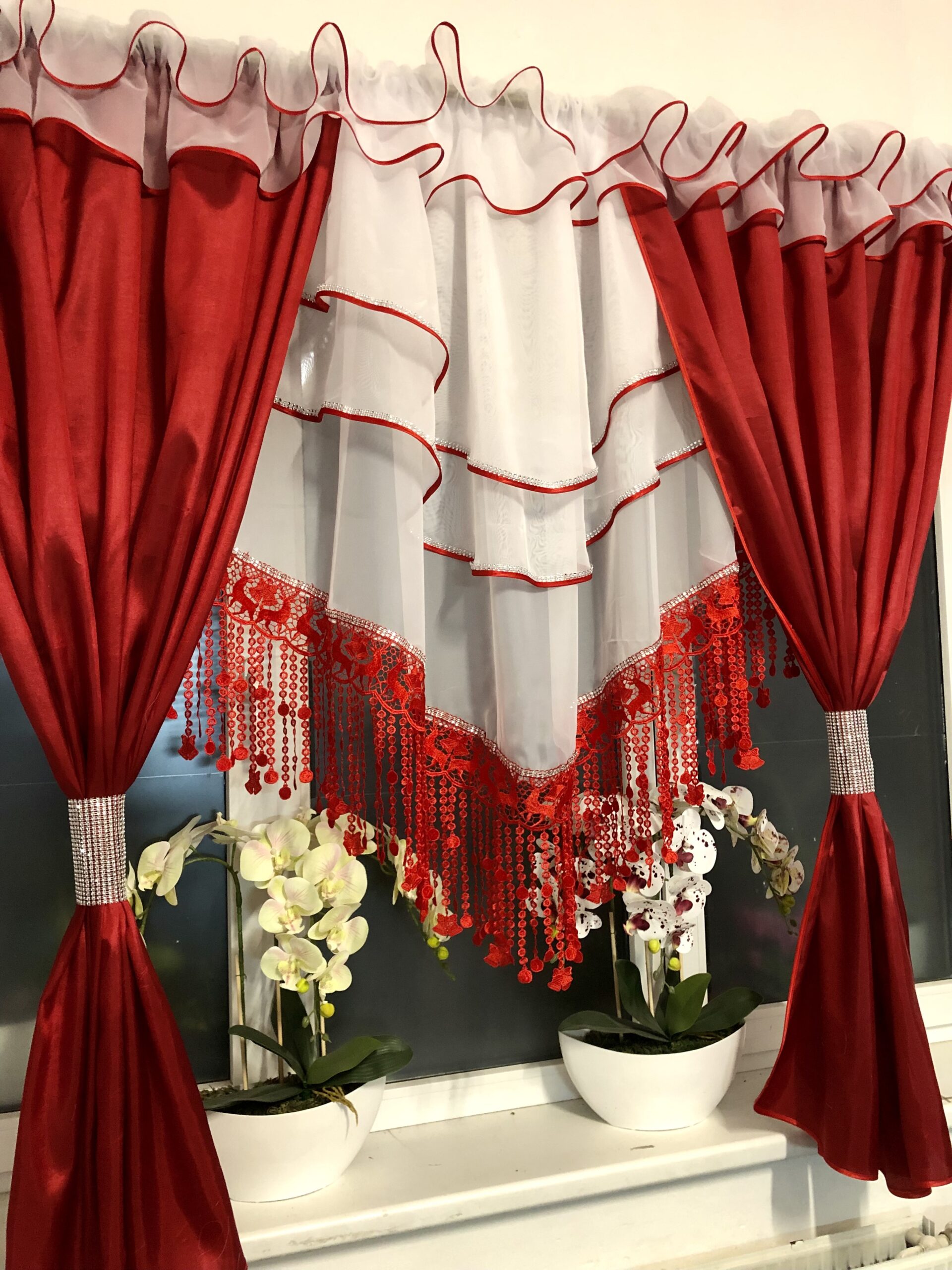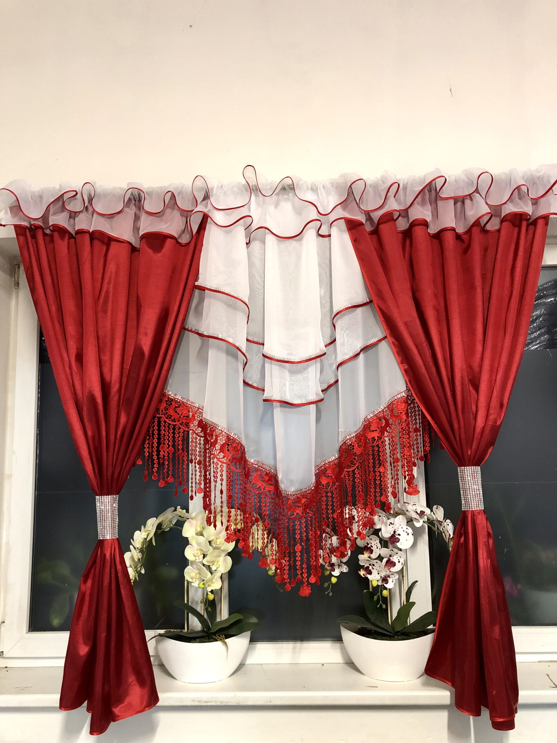 Falbanka firana gotowa z renifer gipiurą 400x160cm AL09 czerwony