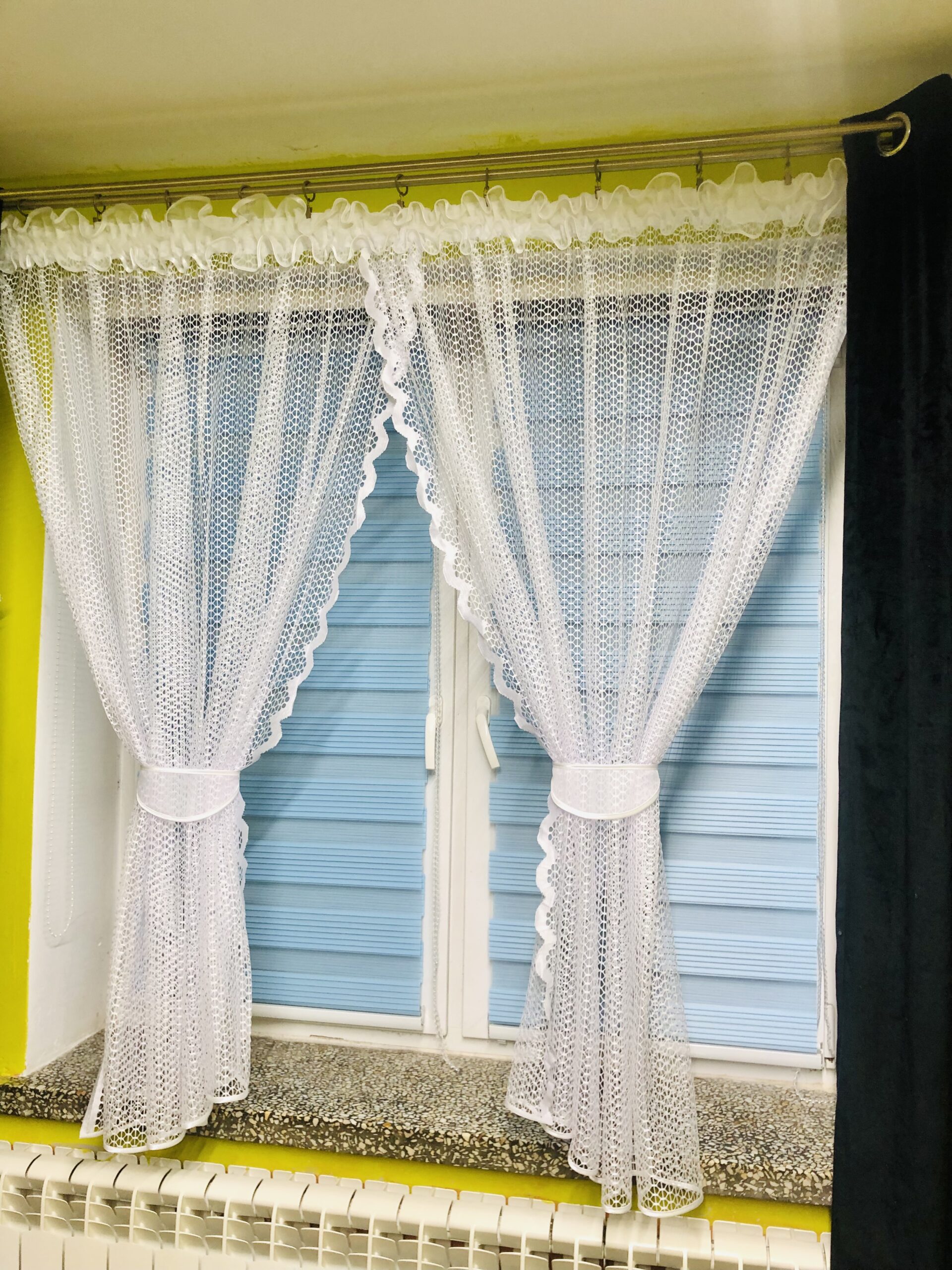 Firana gotowa z białego żakardu imitującego plaster miodu