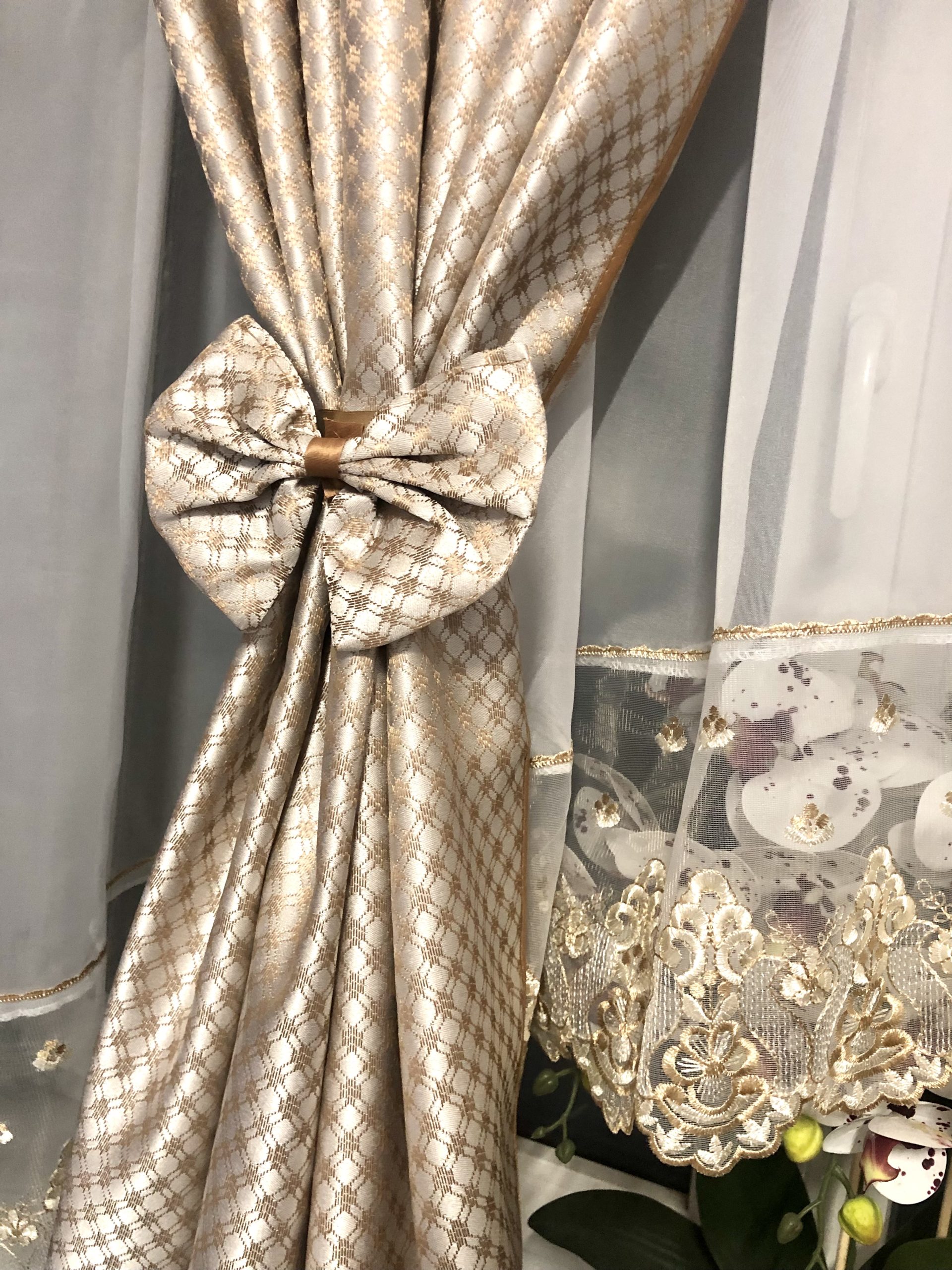 W komplecie dwie taśmy do spięcia zasłon w kokony