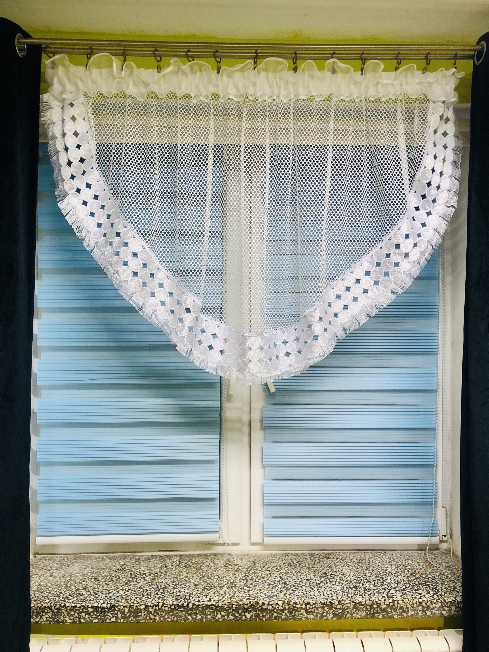 Piękna dwuwarstwowa firany z gipiurą i tkanina markizety