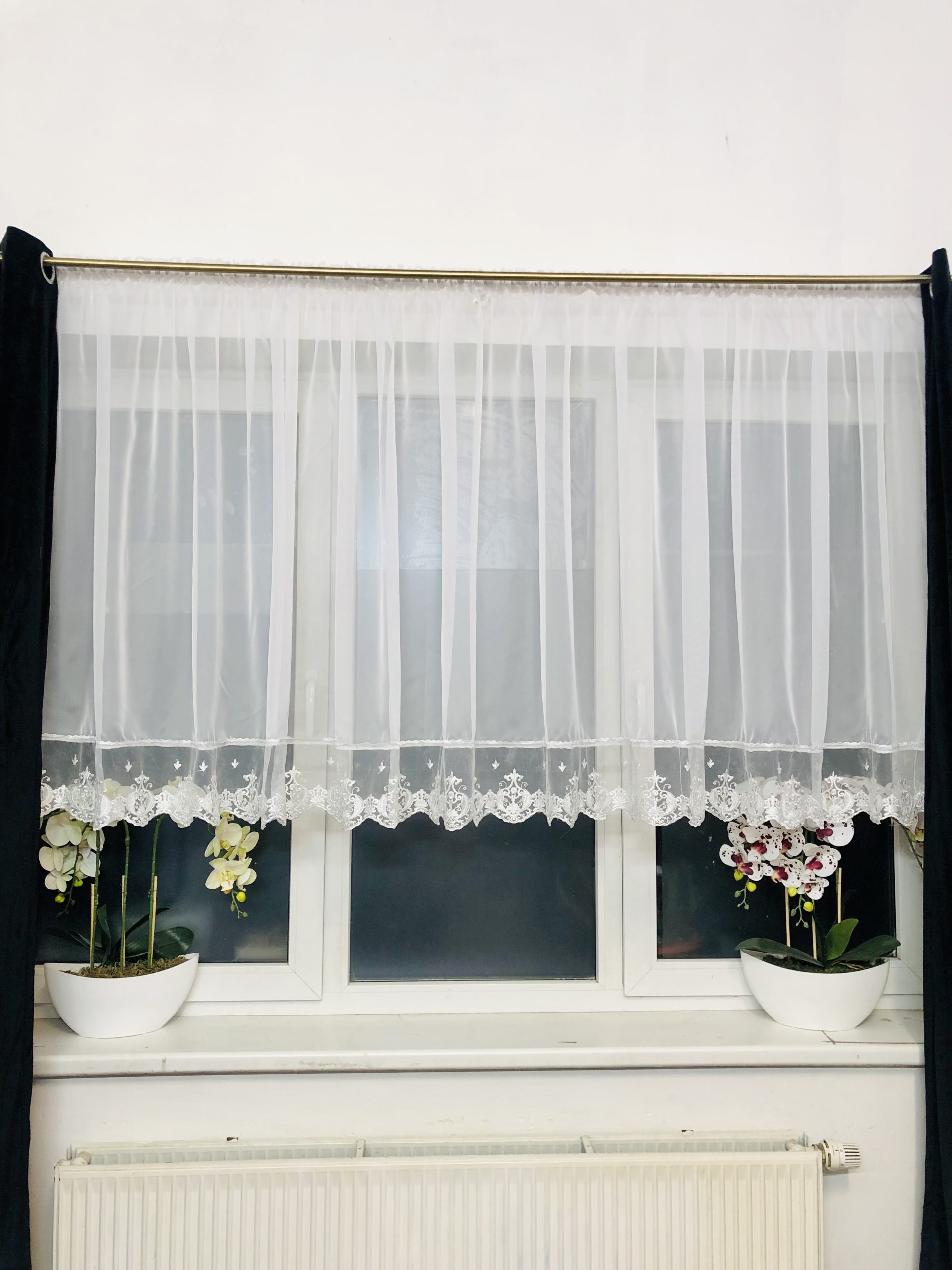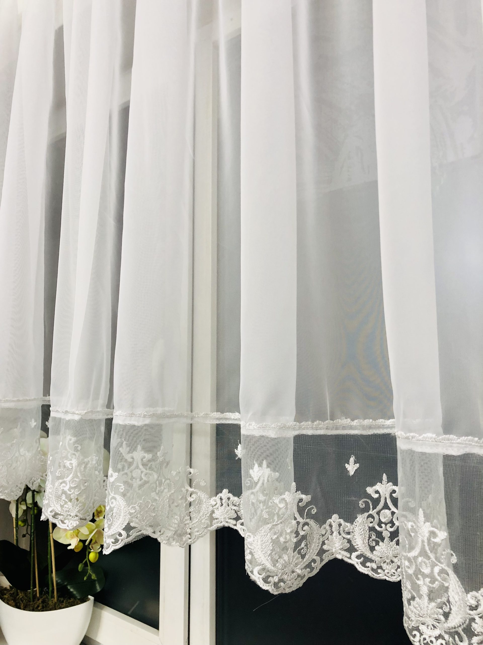 Wyjątkowa biała woał gotowa firana z haftowaną gipiurą