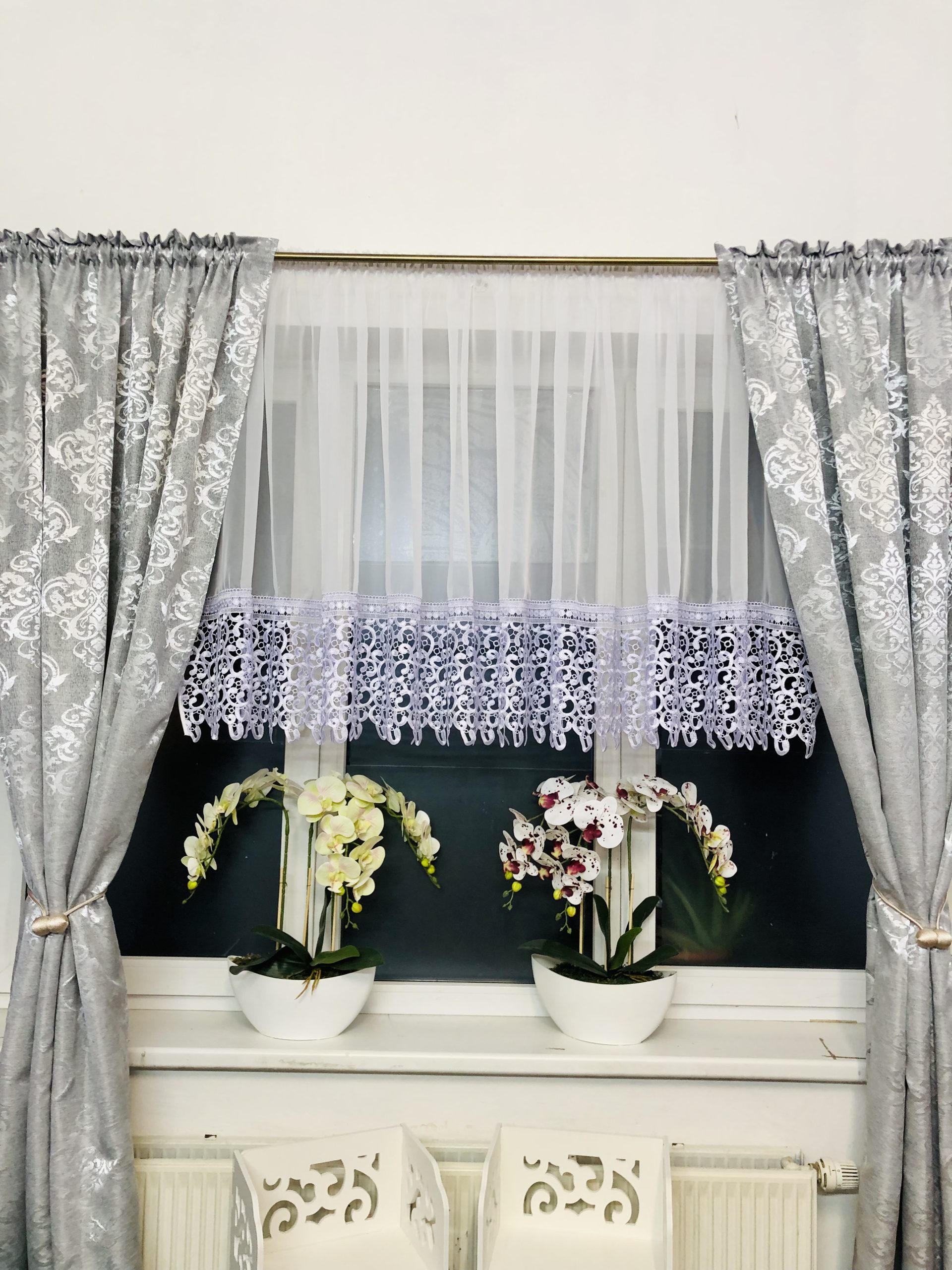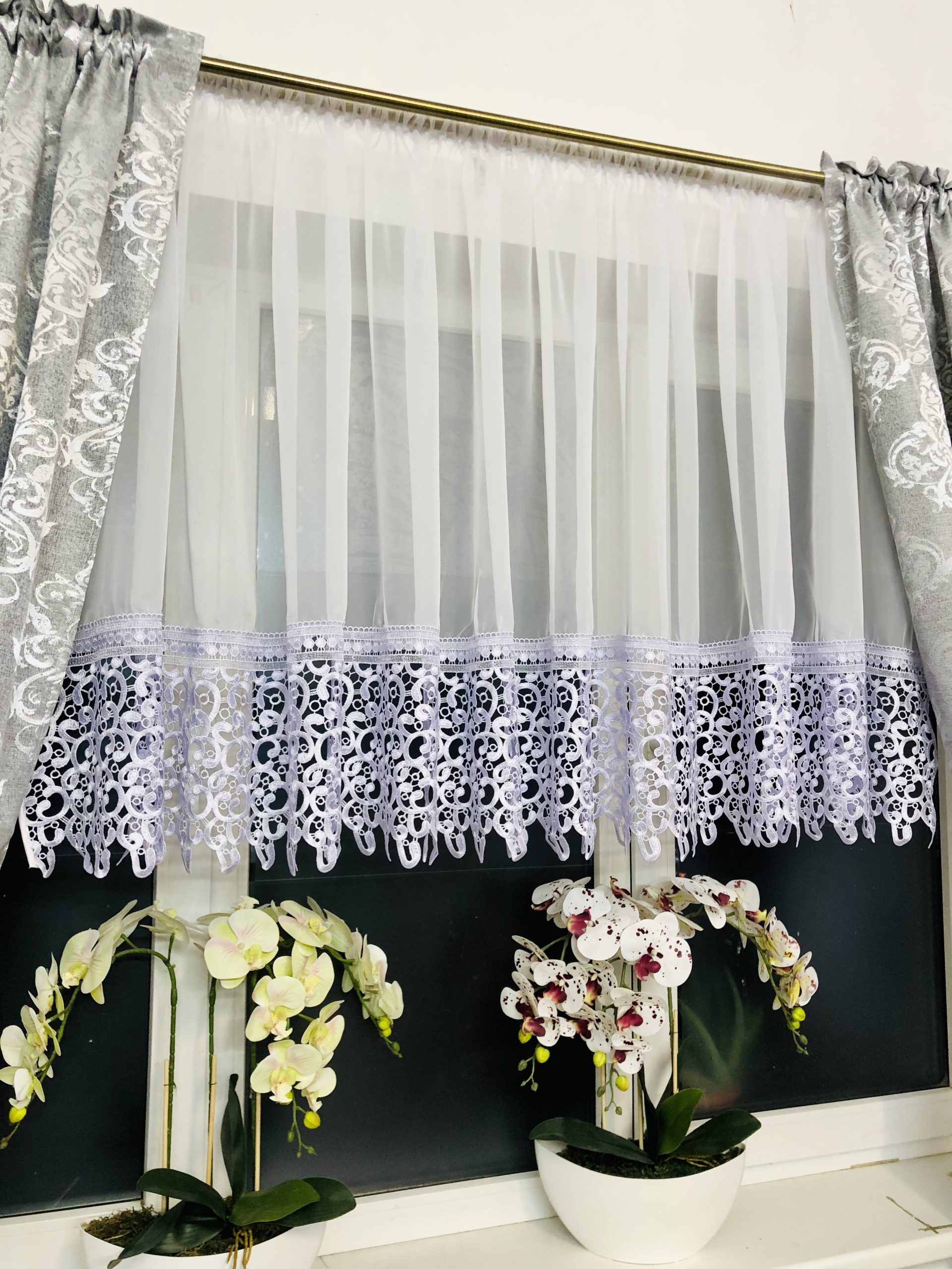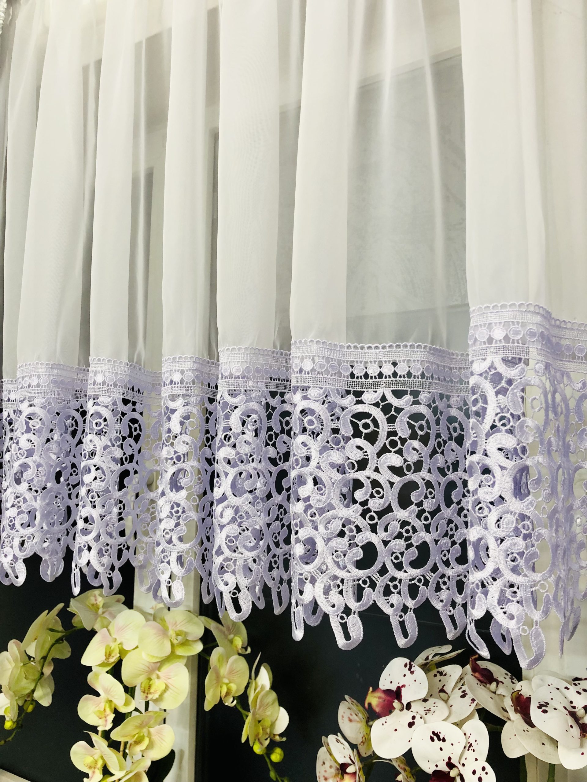 Piękna firana gotowa wykonana z wysokiej jakości woal z gipiurą, są starannie szyte przez wykwalifikowanych rzemieślników Afirany