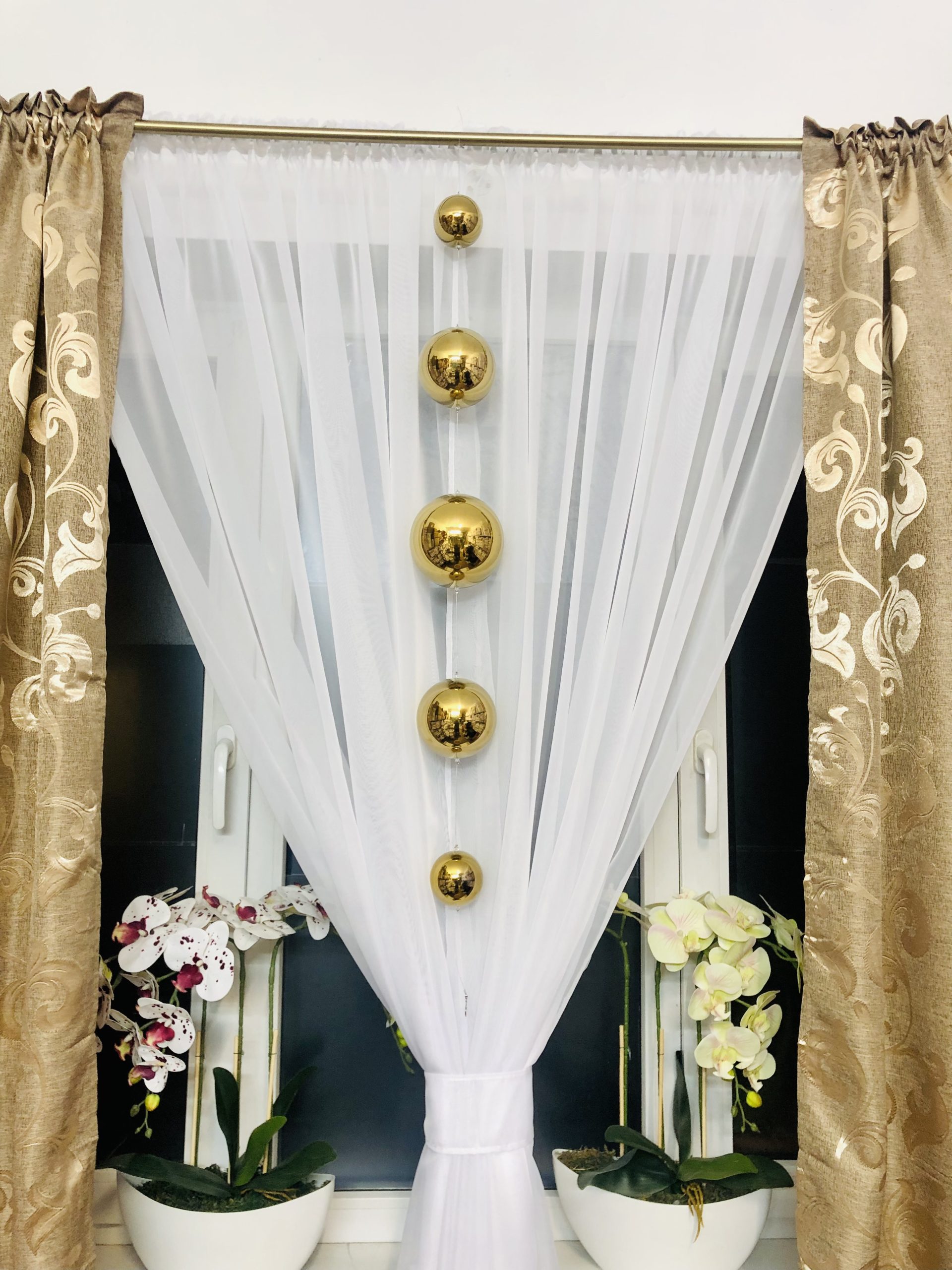 Zestaw kul idealnie komponuje się z panelami, ekranami, firanami oraz Sprawdzą się także jako dekoracje na meblach, stroikach, czy też drzwiach.