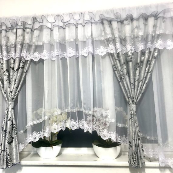 Piękna firany markizeta WB z szara gipiurą 30cm