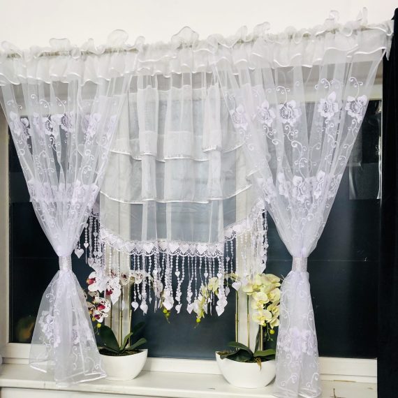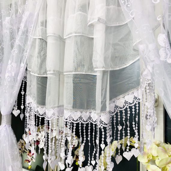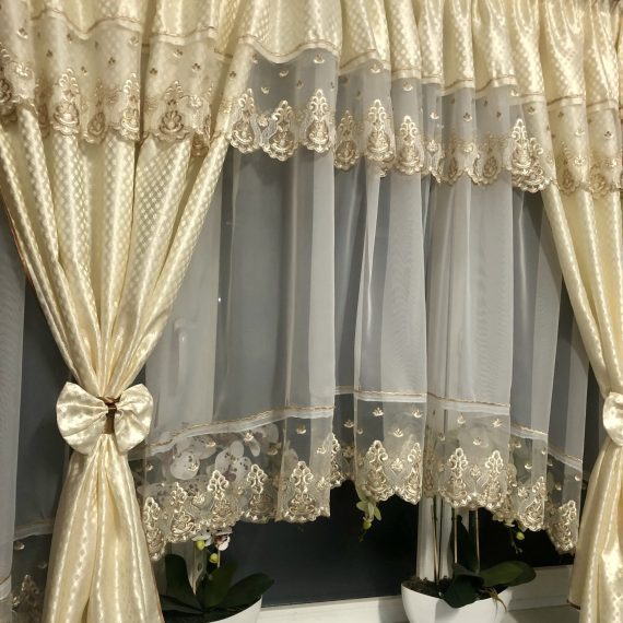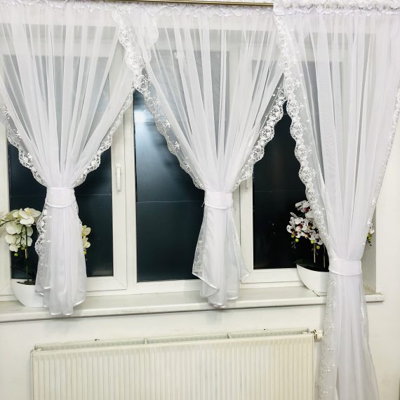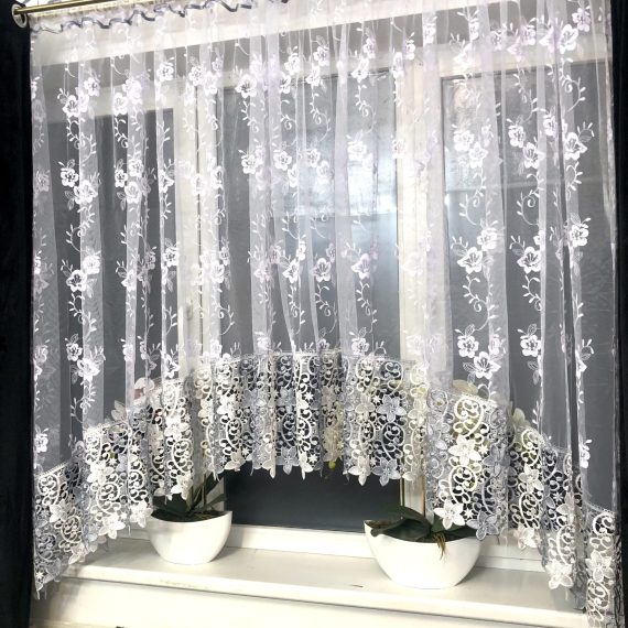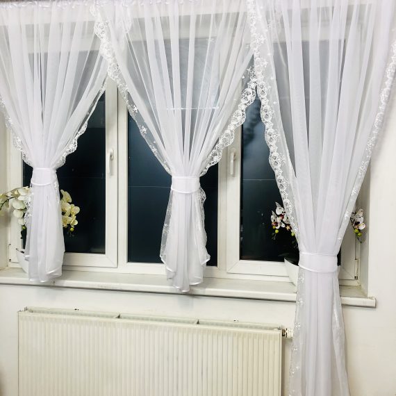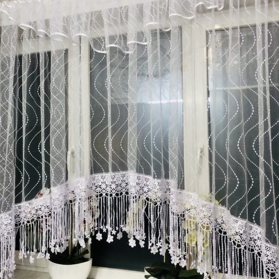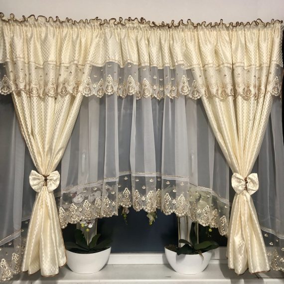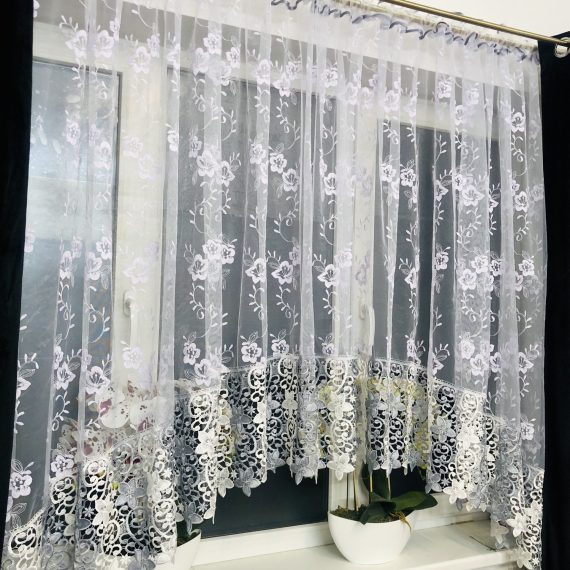 Komplet firana dekoracja z modnym haftem gipiurą – kremowy