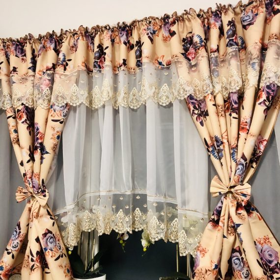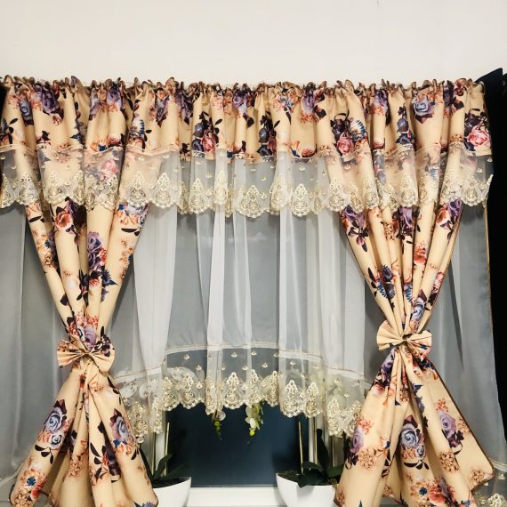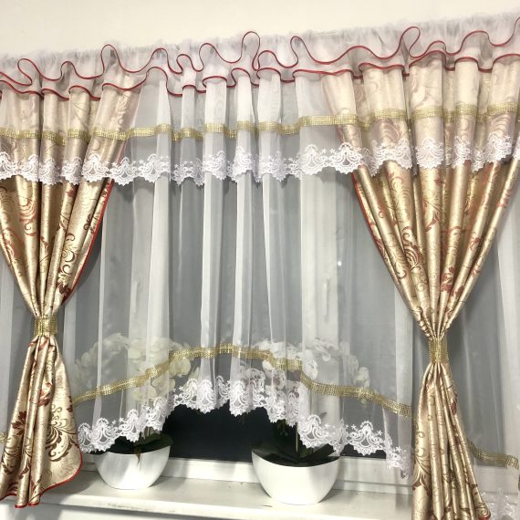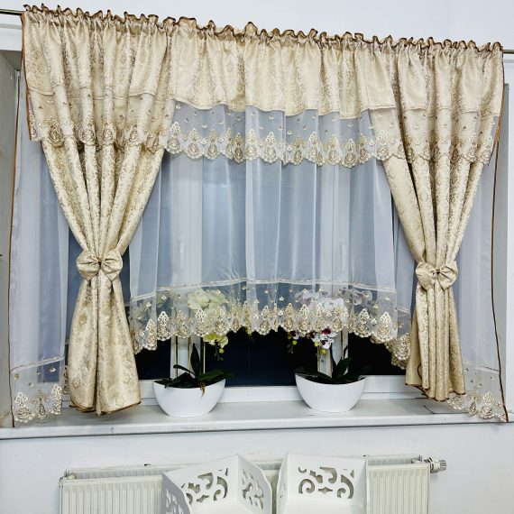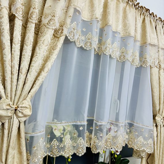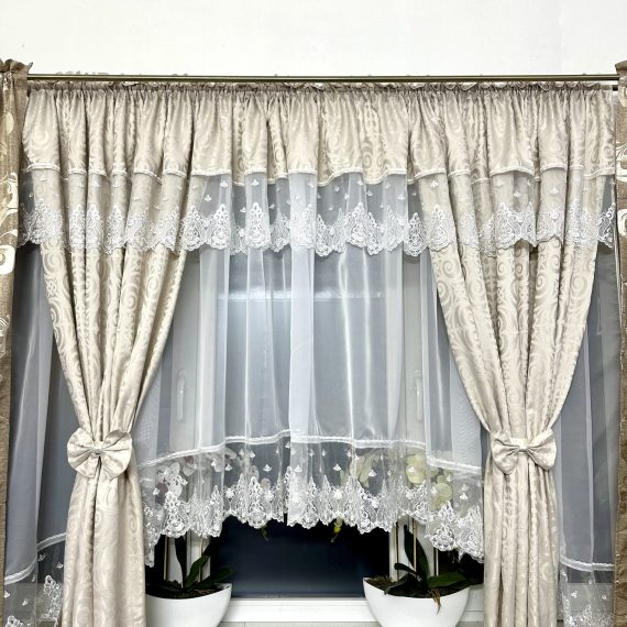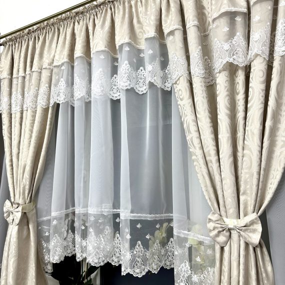 Komplet firana dekoracja z modnym haftem gipiurą – beżowy
