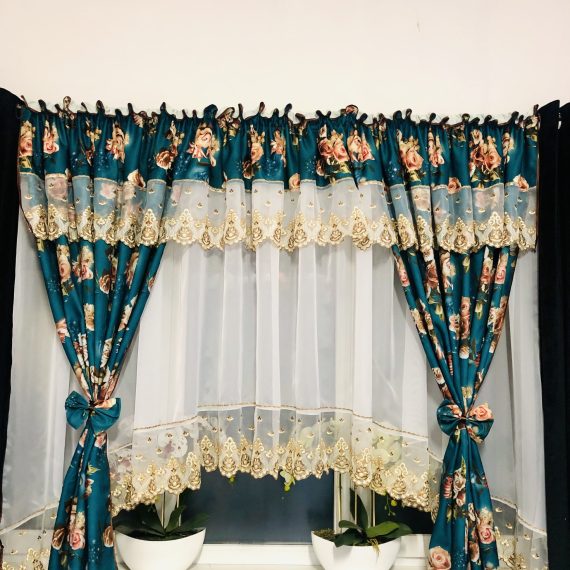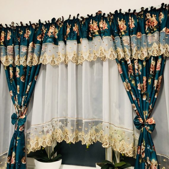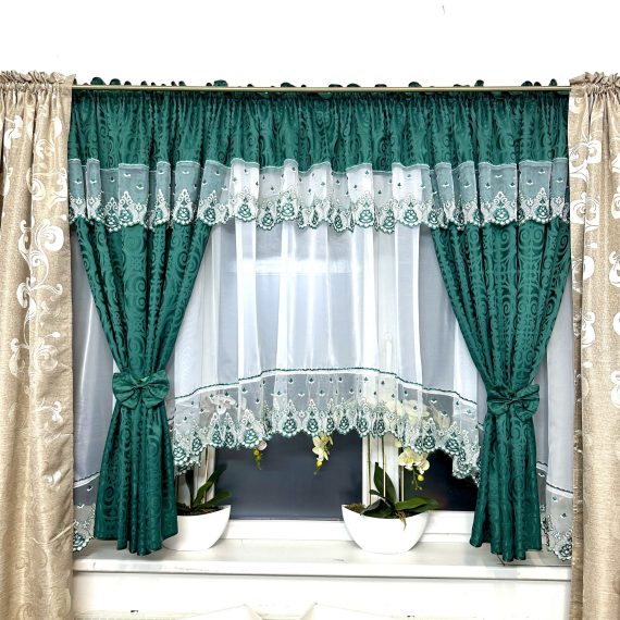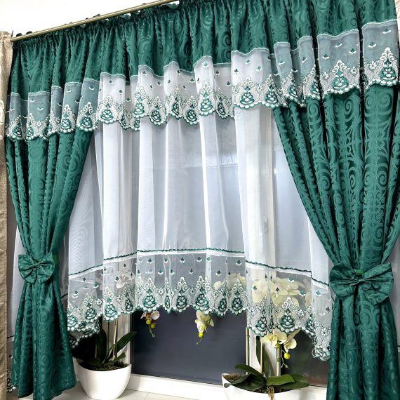 Komplet firana dekoracja z modnym haftem gipiurą – ziełony
